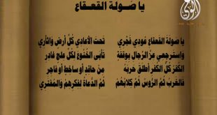 بسم الله الرحمن الرحيم يا صَـــــــولَـةَ القَعـــــــقَاع عبد الستار حسن (أبو خليل) يا صَولَةَ القَعقاعِ عُودِي فَجِّرِي وَاستَرجِعِي عِزَّ الرِّجالِ بِوِقفَةٍ الكُفرُ كُلُّ الكُفرِ أطلَقَ حَربَهُ فَالغَربُ ثُمَّ الرُّوسُ ثُمَّ كِلابُهُمْ وَالعُربُ وَالأعرابُ أسوَأُ سِيرَةً أُمَمٌ كَما قالَ الرَّسُولُ تكالَبَتْ أنَّى ذَهَبتَ فقد تَدَاعَى جَمعُهُمْ هذِي الحَرائِر في الشَّـآمِ صُراخُها …