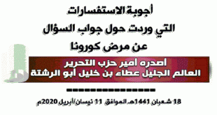 في أجواء الفراغ الذي خلفه غياب علماء المسلمين وهيئاتهم الدينية والمفتين… وعدم استنباطهم للأحكام الشرعية أو إصدارهم للفتاوى المتعلقة بانتشار وباء كورونا، وما الواجب الشرعي الذي على المسلمين أن يفعلوه… في أجواء هذا الفراغ، أصدر أمير حزب التحرير حفظه الله جواب سؤال خاص بهذا الوباء، وبسبب تعطش المسلمين لمعرفة أحكام …