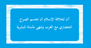 أكمل القراءة »آن لخلافة الإسلام أن تحسم الصراع الحضاري مع الغرب وتنهي مأساة البشرية (2)