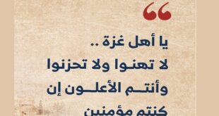 أيها الصامدون المرابطون على ثغر من أعظم ثغور الإسلام: اعلموا أن ما أنتم فيه من بلاء ومحنة، إنما هو طريق العز في الدنيا ودرجات العلو في الآخرة، امتحنكم الله به ليطهركم ويعلي مقامكم. قال تعالى: (قُل لَّن يُصِيبَنَآ إِلَّا مَا كَتَبَ ٱللَّهُ لَنَا هُوَ مَوۡلَىٰنَاۚ وَعَلَى ٱللَّهِ فَلۡيَتَوَكَّلِ ٱلۡمُؤۡمِنُونَ٥١) (التوبة: …