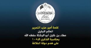 أكمل القراءة »كلمة أمير حزب التحرير العالم الجليل عطاء بن خليل أبو الرشتة حفظه الله بمناسبة الذكرى الـ١٠٥ على هدم دولة الخلافة